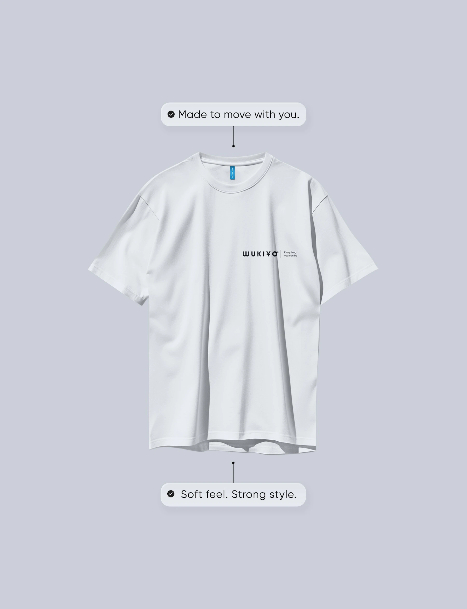 The rib-knit crewneck tee fits relaxed in the body with dropped shoulders. The signature “WUKIYO®” soft-touch logo is branded on the chest and across the back. Join the WUKIYO® movement today.