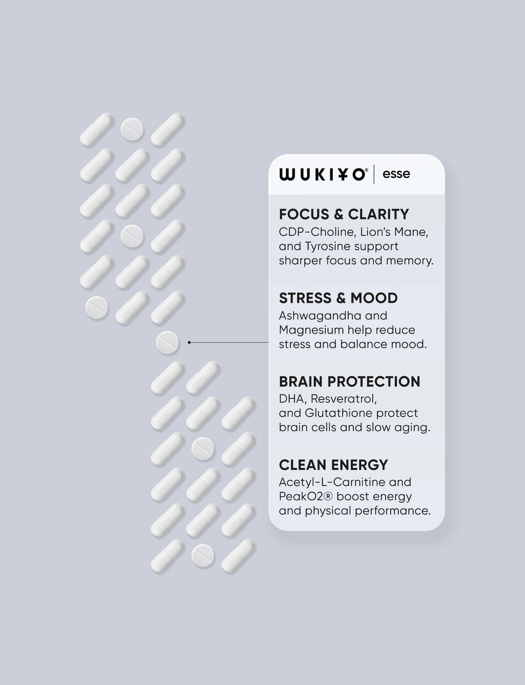WUKIYO® | esse has truly been a game-changer for me. My mind feels sharper, and I’m able to stay focused throughout the day. This product is a definite winner!