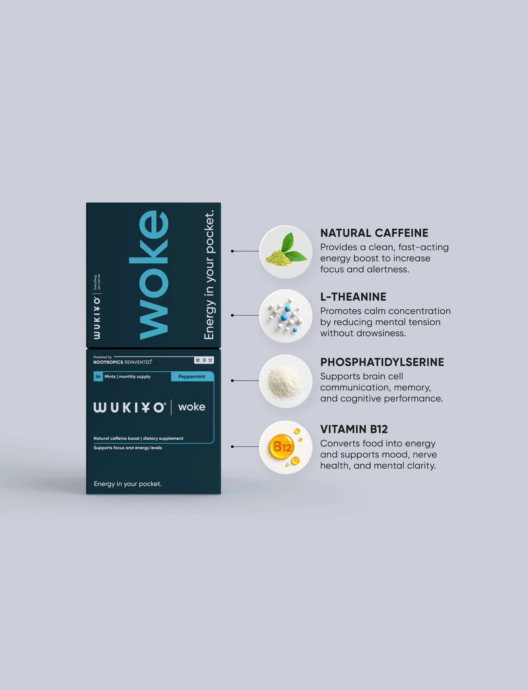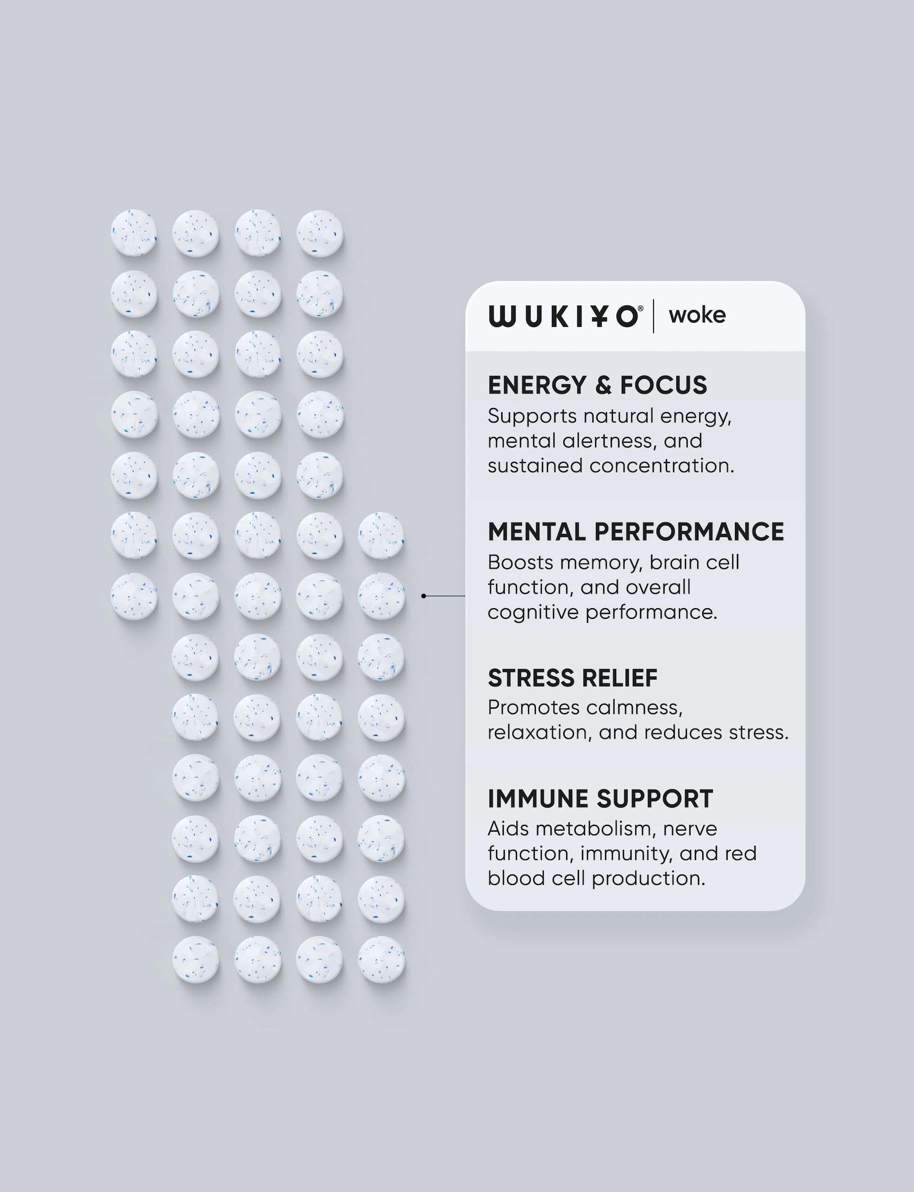 WUKIYO® | woke is my go-to for an energy boost that lasts. Finally, a supplement that delivers focus, alertness, and vitality without the crash. Energized and thriving!